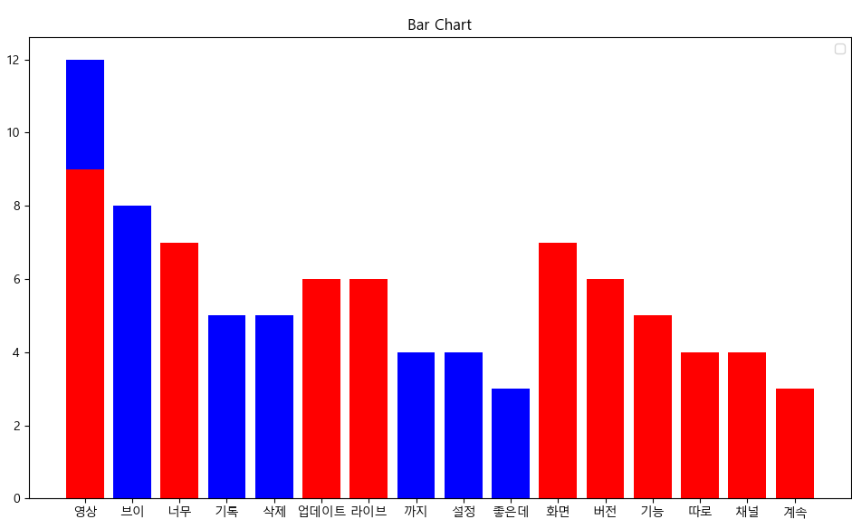 긍정과 부정에 최빈 단어는 '영상' 이다. 수치로도 확인할 수 있지만, 본래 취지는 그래프를 통한 insight이기에 그래프로 확인해보자.