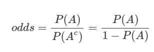 승산(Odds)이란 임의의 사건 A가 발생하지 않을 확률 대비 일어날 확률의 비율을 뜻한다.