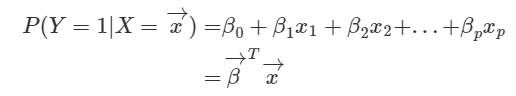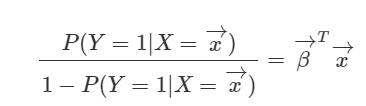 위 식에서 좌변의 범위는 0~1사이다. 하지만 우변은 음의 무한대에서 양의 무한대 범위를 가지기 때문에 식이 성립하지 않는 경우가 존재할 수 있다. 좌변을 Odds로 설정해보자.