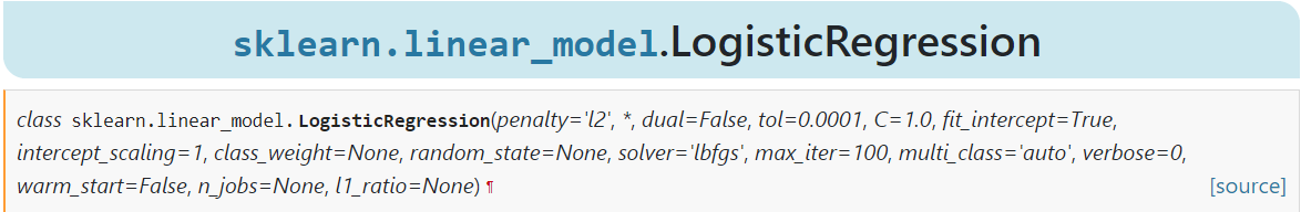 -C: float, default=1.0 =>정규화 강도에 대한 역, 서포트벡터 머신과 마찬가지로 값이 작을수록 더 강력한 정규화 지정