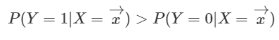 위와 같이 이항 로지스틱 모델에 범주 정보를 모르는 입력벡터 x를 넣으면 범주 1에 속할 확률을 반환해 준다.