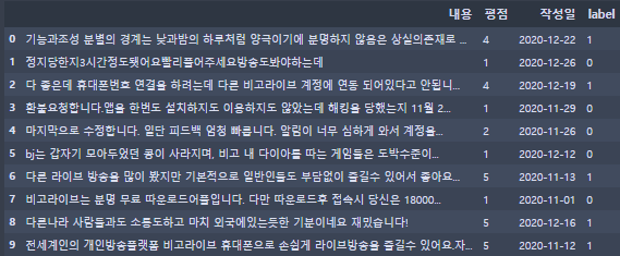 test_data['tokenized']=test_data['내용'].apply(okt.morphs)